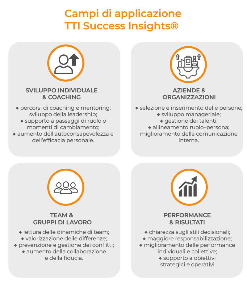 TTI Success Insights® è uno strumento di assessment che permette di comprendere in modo strutturato come una persona pensa, agisce e si motiva nel contesto professionale.